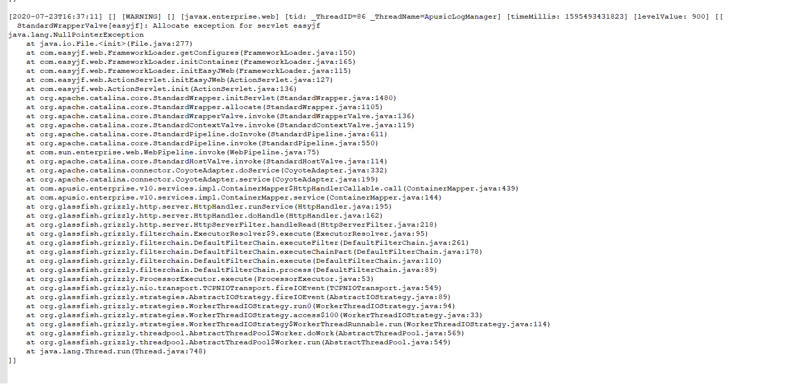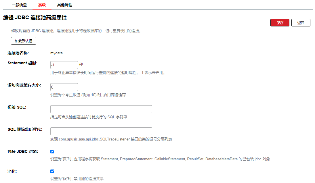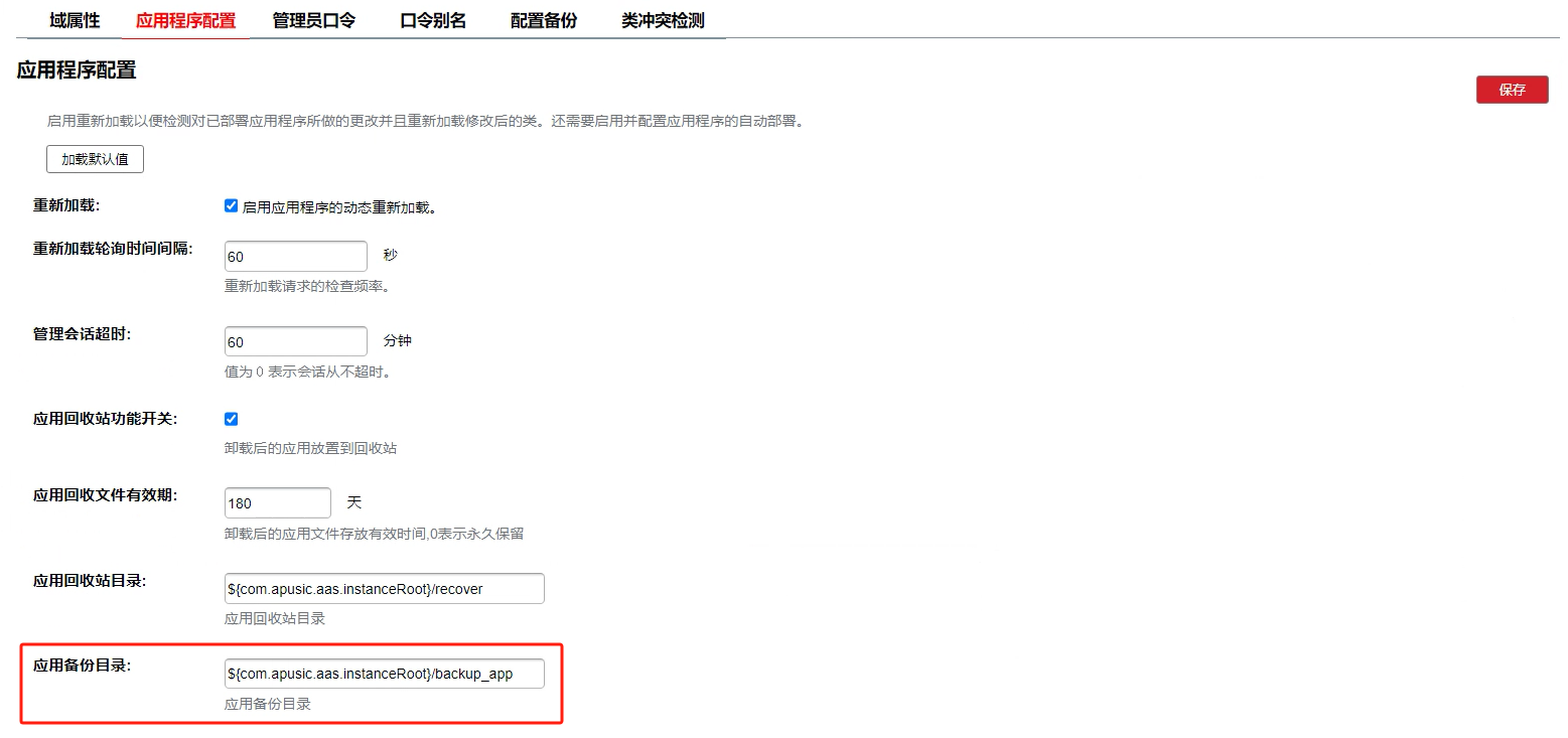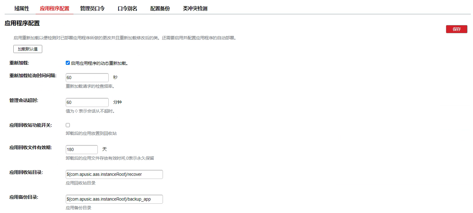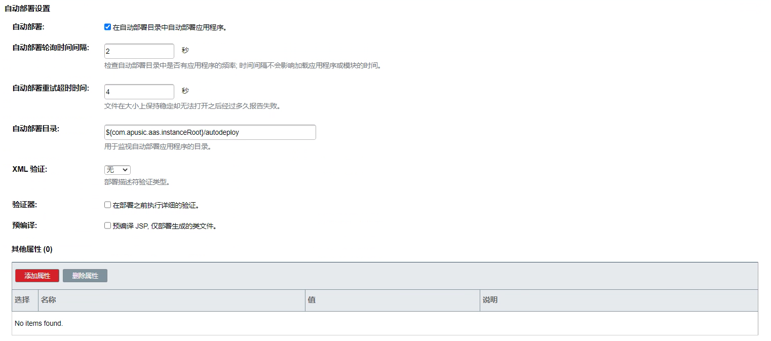 增加参数 apusic.context.getRealPath.notAllowNull=true 控制 ServletContext 的 getRealPath()方法不返回 Null 的问题,默认为 false。
