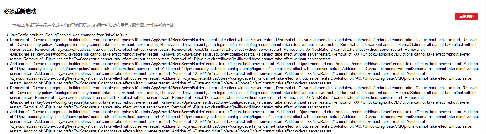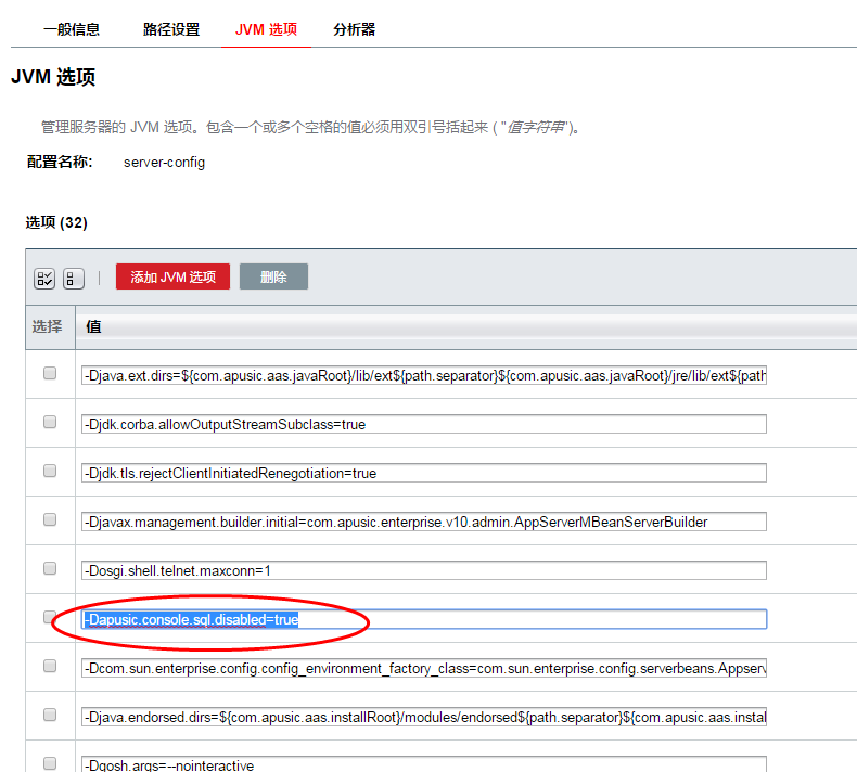 方法 1. 在启动工具,如bin/asadmin 中添加jvm参数 apusic.command.password.disabled=true 设置关闭命令行密码校验。如下: