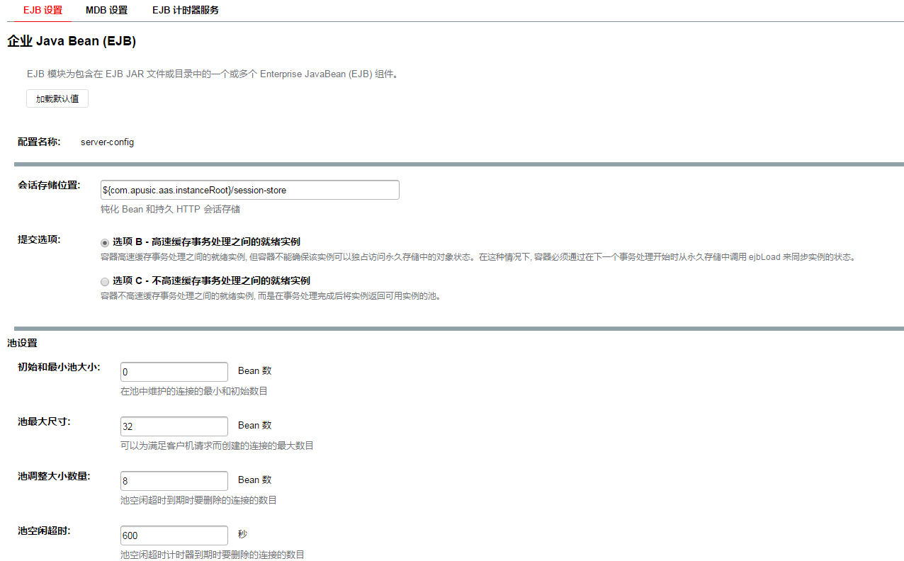 应用程序通用配置位于 ${DOMAIN_HOME}/mydomain/config/default-web.xml。