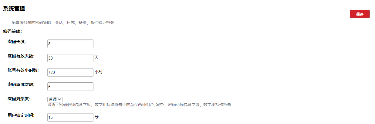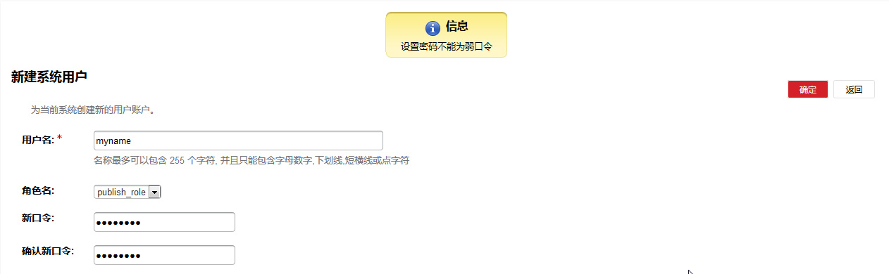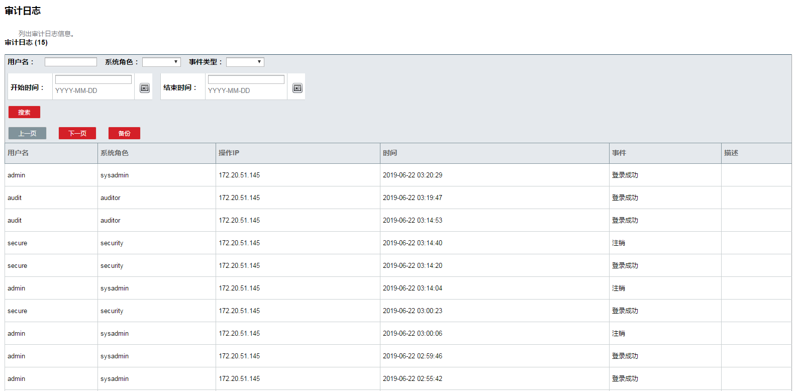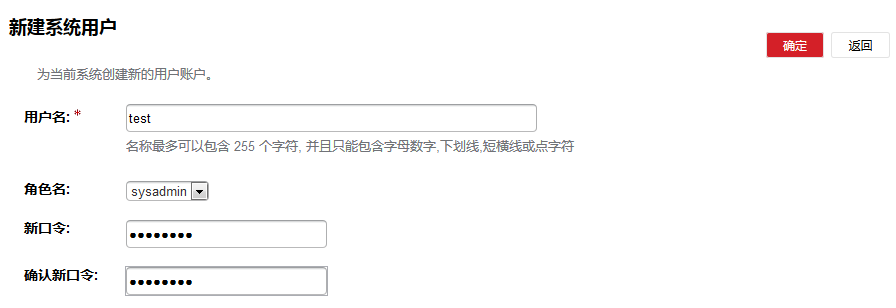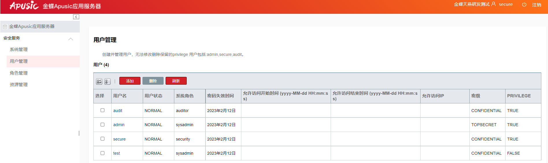 用户名 用户名密码 角色 类型(PRIVILEGE为默认类型即是默认三个用户(admin,secure,audit) 其它新增的用户为NORMAL)
