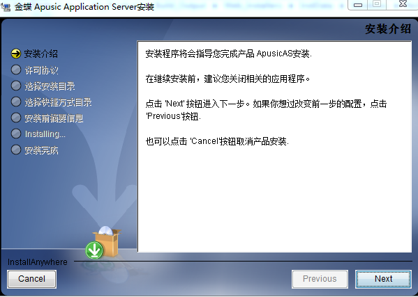 针对不同的操作系统,金蝶 Apusic 应用服务器提供不同的安装包,也提供适合各个操作系统解压即用的 zip 格式的产品包。