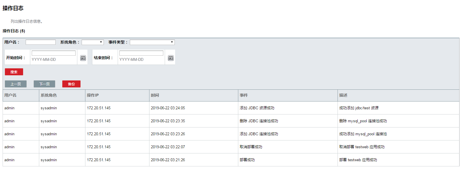 | 日志文件 | DOMAIN_HOME/logs |