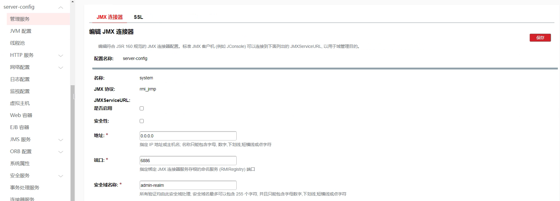 | JMX 端口 | 6886 |