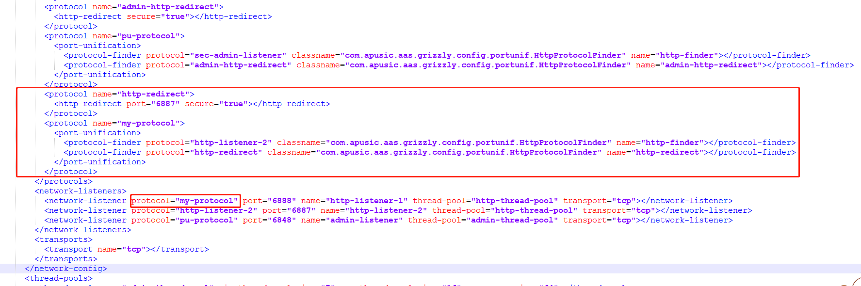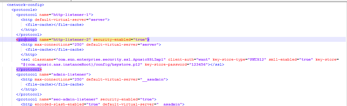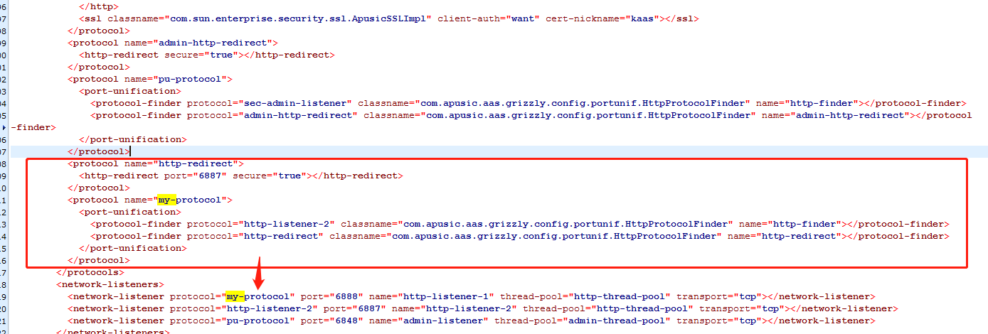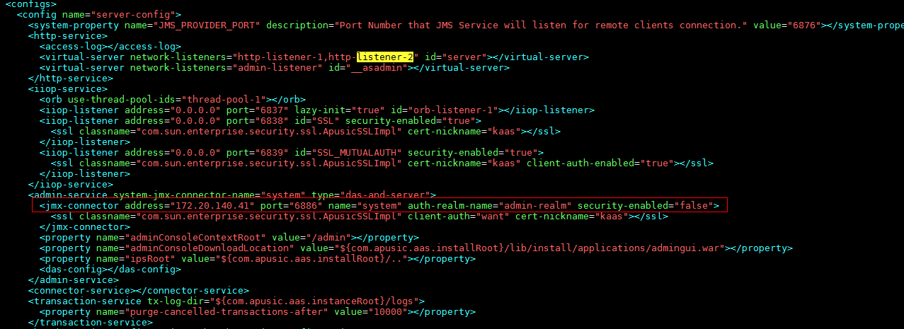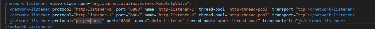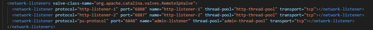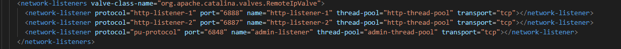新增RemoteIpValve类并抽取部分Tomcat代码实现,由于AASV10只有Tomcat部分功能,故对于完整的Tomcat RemoteIpValve配置只支持核心的配置参数valve-class-name、remote-ip-header。配置在AASV10配置文件 domain.xml的network-listeners节点: