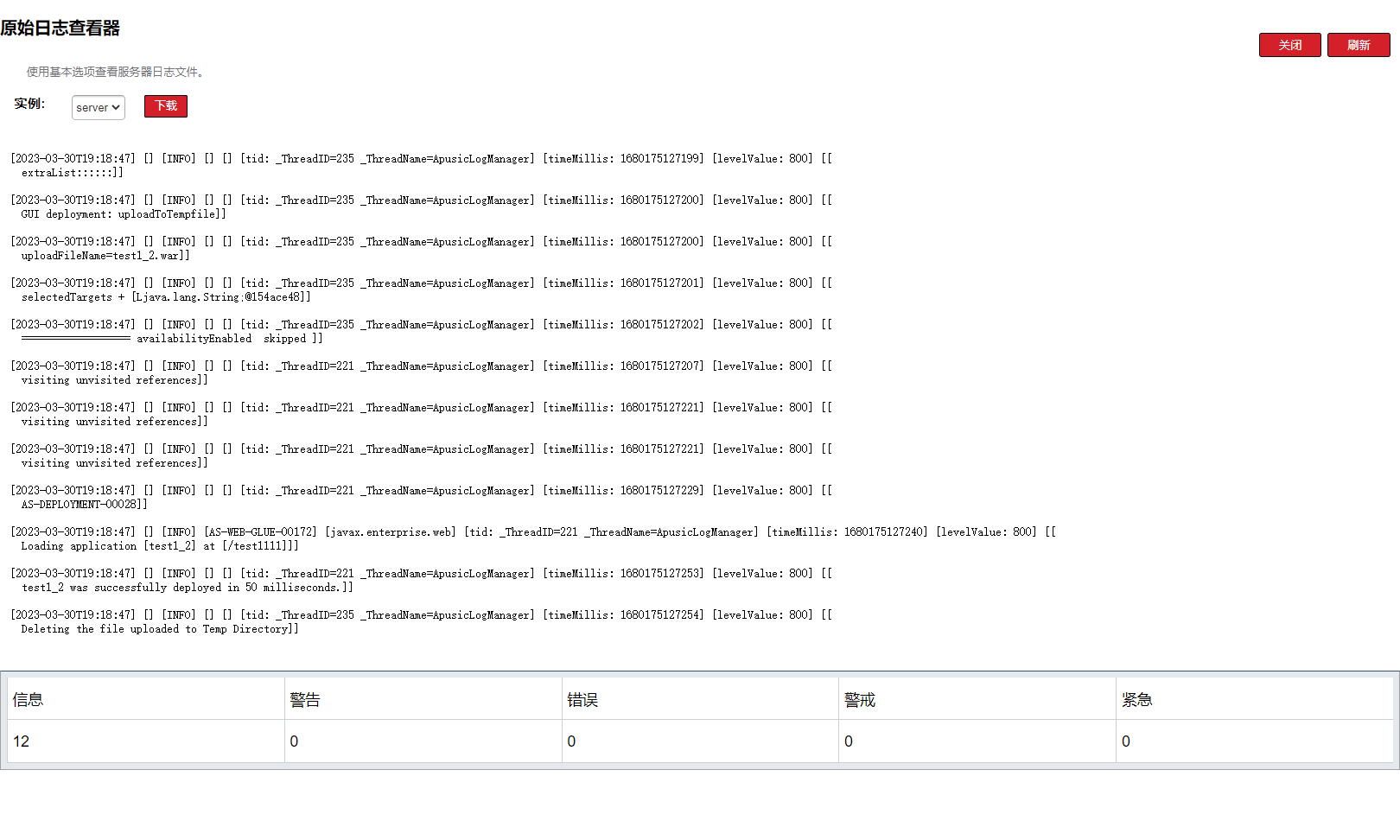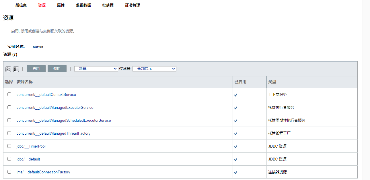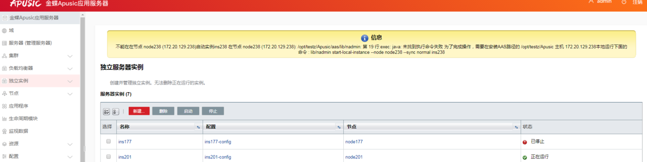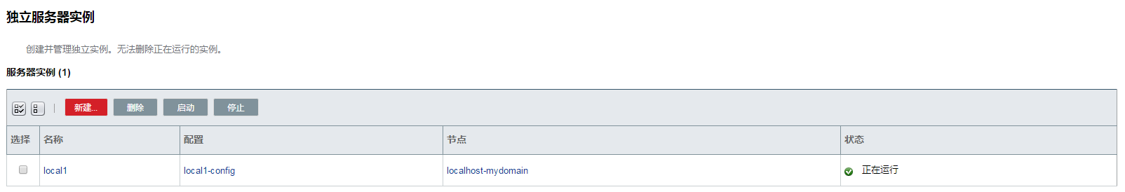 一个服务器实例是 Java 平台上(Java 虚拟机或 JVM 机器)的单个虚拟机,它运行在服务器的单个节点上。服务器实例构成了应用部署的基础。实例是构建集群、负载均衡和服务器会话持久性中的重要构件。每个实例只属于一个域并且有自己的目录结构、配置和部署的应用。每个实例包含了一个到节点的引用。