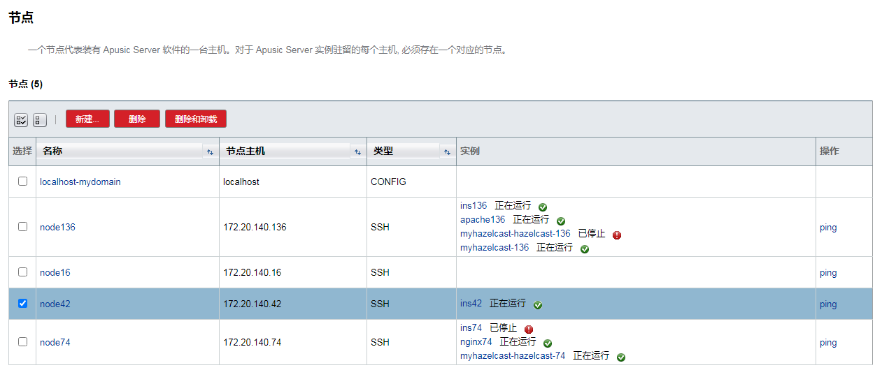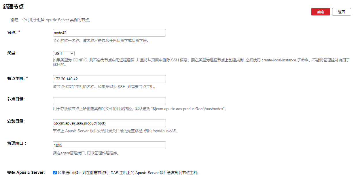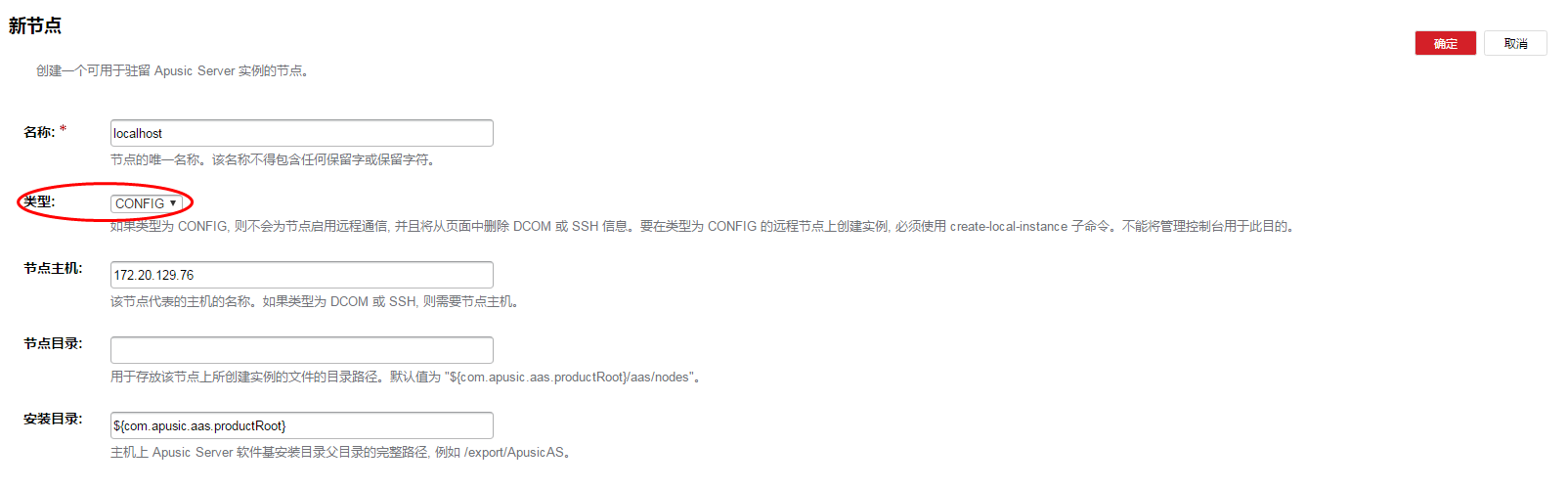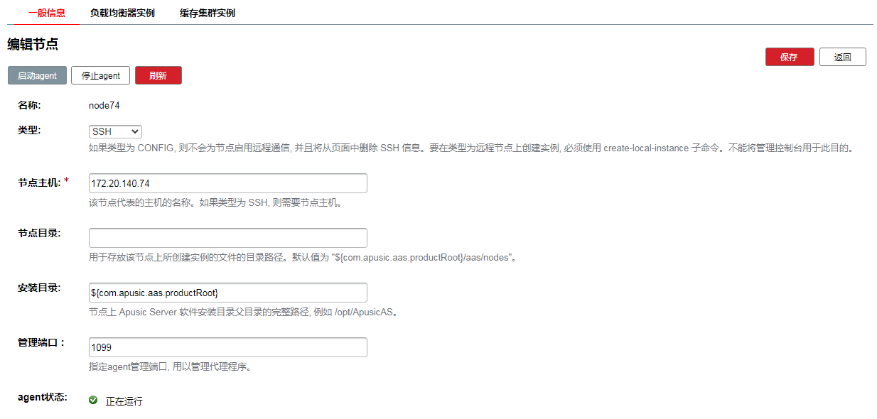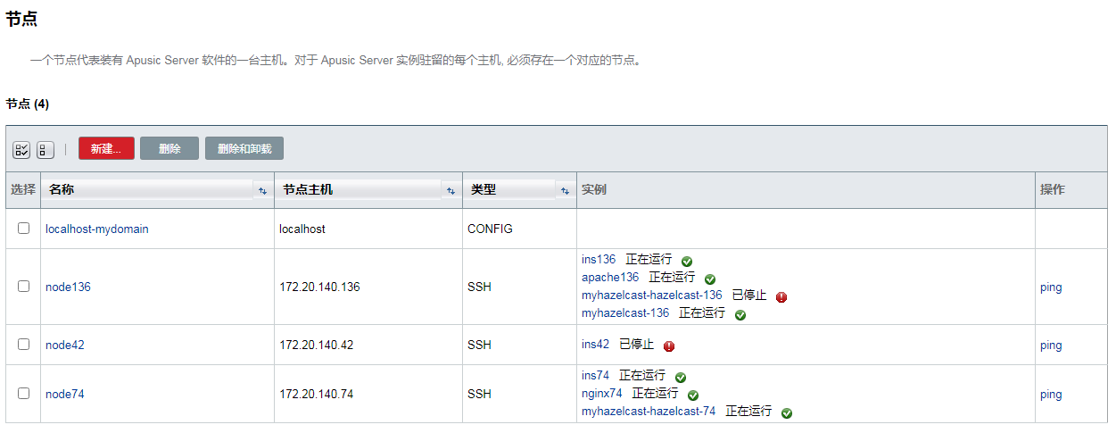 每个节点对应一台装有应用服务器软件的主机,应用服务器实例所在的主机上必须存在一个对应的节点。节点配置信息包含主机名称,以及应用服务器安装在主机上的位置。