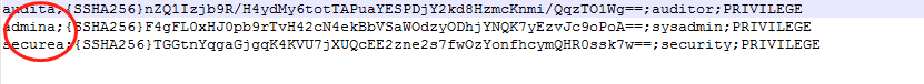 admin;{SSHA256}dhOKpSrk2Dc6k5F+gTMBrq0xBuAVtUOtTbIiPcdT7Rv3cacwRB+O3g==;sysadmin;PRIVILEGE