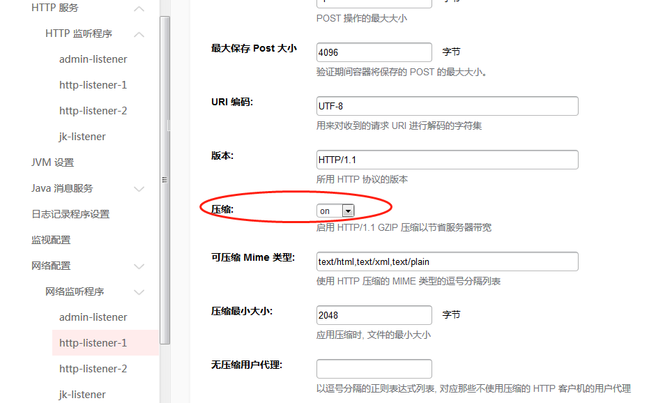 <param-name>apusic.http.force.compression</param-name>
