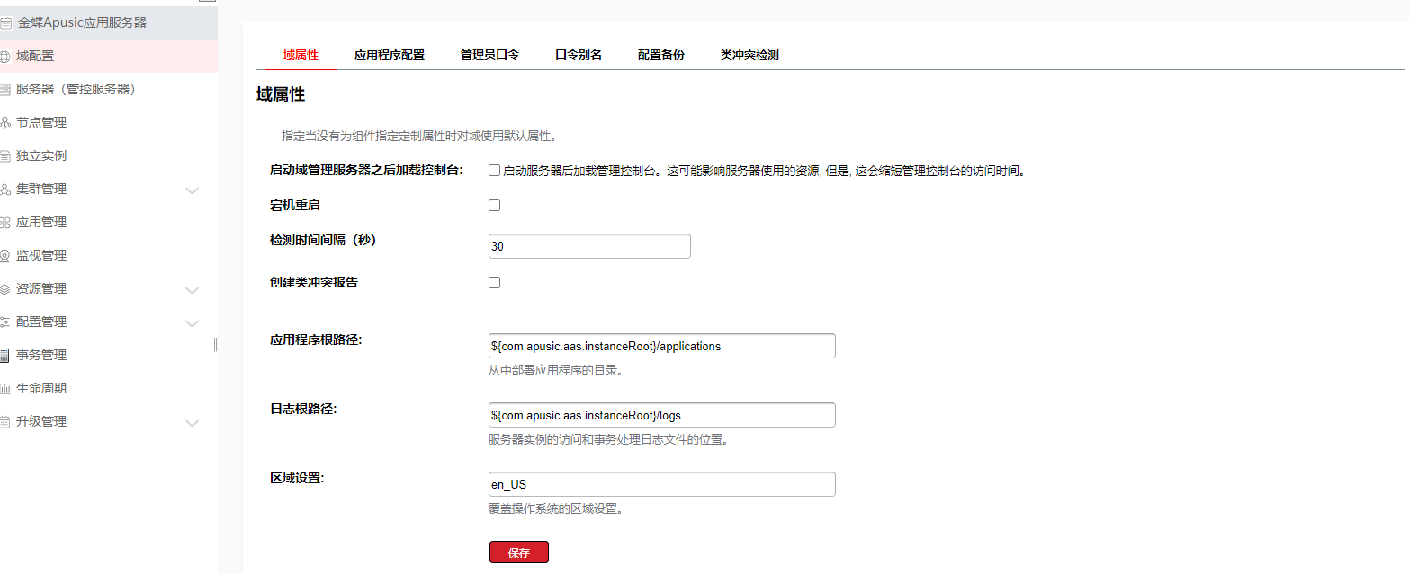 域是指作为一个单元来管理的并相互关联的一组服务器资源。一个域可以包含一个或多个独立服务器,还可包含服务器集群,它们共享一套公用配置,并使用扩展标记语言 XML 定义,配置文件名为 domain.xml,存放在 ${DOMAIN_HOME}/config/ 目录中。域是一个完整的管理单元,当向域里部署应用时,该应用只能部署到域之内的服务器上。如果域中包含集群,那么集群中的所有服务器都必须属于同一个域。