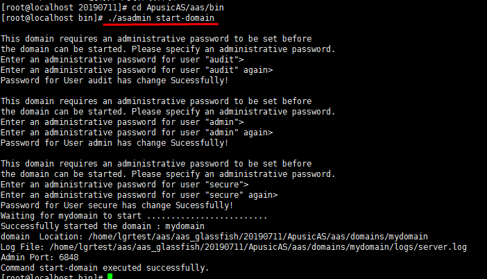 方法2. 执行命令./asadmin --host localhost --port 6848 login,输入用户名和密码,生成一个密码文件 /root/.aasclient/pass,以后这台机器执行 asadmin 命名不用输入密码。