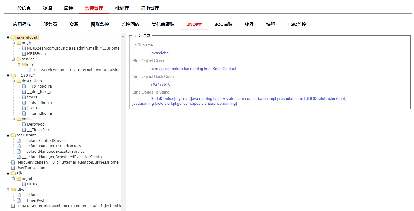增加一个系统属性: 目前的 JNDI 在绑定和 lookup 的时候都会先拷贝对象(使用 Java 的序列化机制拷贝,如果没有实现序列化接口则不拷贝).这里增加一个系统属性: com.apusic.aas.naming.copyObject,当该属性为 false 的时候不进行拷贝。默认为 true。